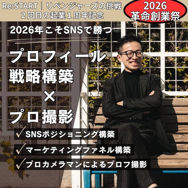 こんな悩みはありませんか? ・SNSで発信しているのに、仕事につながらない ・フォロワーはいるが、高単価商品が売れない ・自分が何者なのか、プロフィールでうまく伝えられていない ・頑張って投稿しているのに、なぜか選ばれない ・発信・プロフィール・写真がバラバラで、一貫性がない ・高単価を出していい人に見えているのか不安 ・カメラマン探しや撮影ディレクションまで手が回らない もし一つでも当てはまるなら、 問題は「発信量」ではありません。 SNSの入口=プロフィール戦略が整っていないことが原因です。 ⸻ SNSで「勝つ」とは SNSで「勝つ」とは、 フォロワー数を増やすことではありません。 理想のお客様から選ばれ続け、 望む未来を手に入れること。 このプロジェクトは、そのための マーケティング・ブランディング構築と、 SNSの入口となるプロフィール写真を 一貫した戦略で完成させる個別プロジェクトです。 ⸻ この商品で得られる未来 • プロフィールが「集客の入口」として機能し始める • 発信・写真・ビジネスの方向性が一本に揃う • 高単価商品を売るための前提条件が整う • 「なぜか選ばれない」状態から抜け出せる ⸻ こんな方におすすめです • SNSで高単価商品を売りたい方 • 発信しているが、選ばれる実感がない方 • マーケ・ブランディング・写真を一貫して整えたい方 • カメラマン探しから戦略設計まで、まとめて任せたい方 ⸻ 向いていない方 • フォロワー数だけを増やしたい方 • 趣味レベルのSNS運用をしたい方 • 商品・サービスを持っていない方 ⸻ <内容> オンラインSNS戦略相談(90分 × 2回) ▶ 第1回目:マーケティング構築(Zoom) • あなたのビジネスに合わせた導線設計 • 高単価商品が売れる前提条件の明確化 ▶ 第2回目:ポジショニング構築(Zoom) • どんな立ち位置で選ばれるのか • 発信の軸・世界観・専門性の整理 • プロフィール文・肩書き・写真の方向性を統一 ※ 内容に応じて、順番は前後する場合があります。 ⸻ プロ撮影(戦略設計後・完全個別) • 上記で構築した戦略をもとに撮影を設計 • プロカメラマンをこちらでアテンド • 完全1対1の個別撮影 • 撮影場所:神戸・大阪・京都 ※ その他地域は交通・宿泊費別途 ※ いわゆる「映える写真」を撮るサービスではありません。 SNSで勝つためのプロフィール写真を撮影します。 ⸻ <概要> • 定員:5名限定 • 創業祭特別価格:100,000円 (定価:298,000円) 【注意事項】 ・申込後のキャンセルはできません ・いかなる理由であっても返金には応じかねます ・コンプライアンス違反社であることが判明した場合はキャンセルといたします